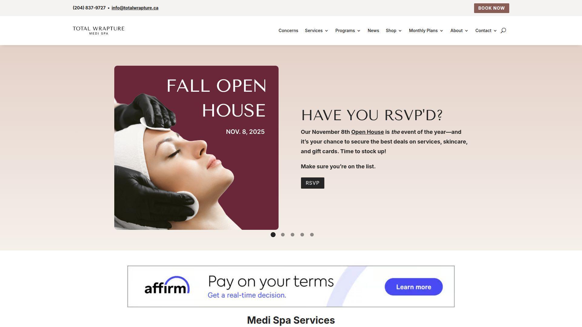 After implementing targeted keyword optimization and local schema markup, Total Wrapture Medi Spa saw a 57% increase in organic search visits from Winnipeg within 3 months. Google My Business engagement rose 42%, translating to a 28% uplift in booked services.