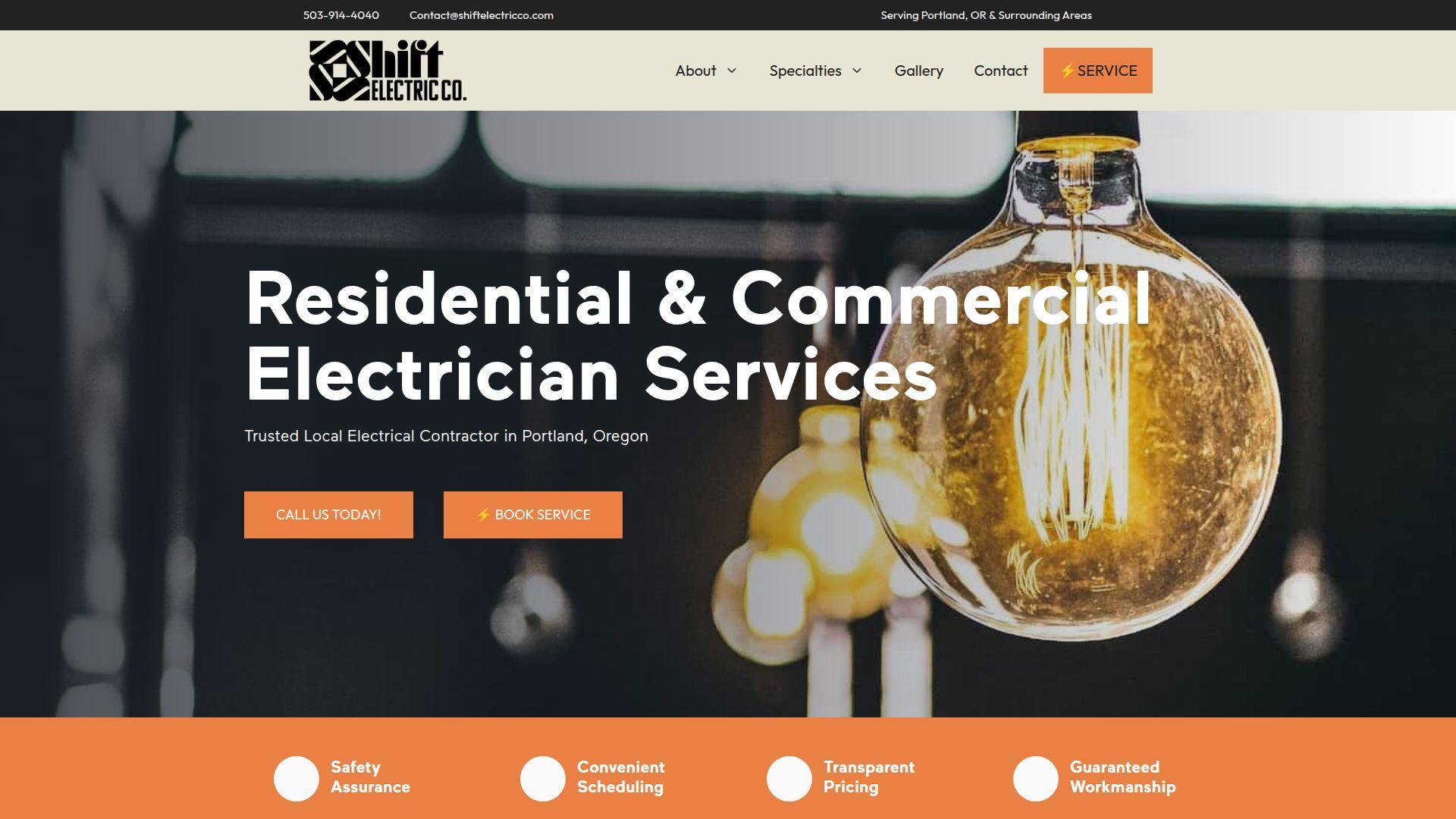 After a targeted SEO campaign for Shift Electric Co., organic search traffic from Portland-area keywords rose by 52% within 120 days. Strategic content optimisation, local schema implementation and improved backlink profiles boosted visibility for terms like “Portland electrician” and “EV charger installation Portland.”